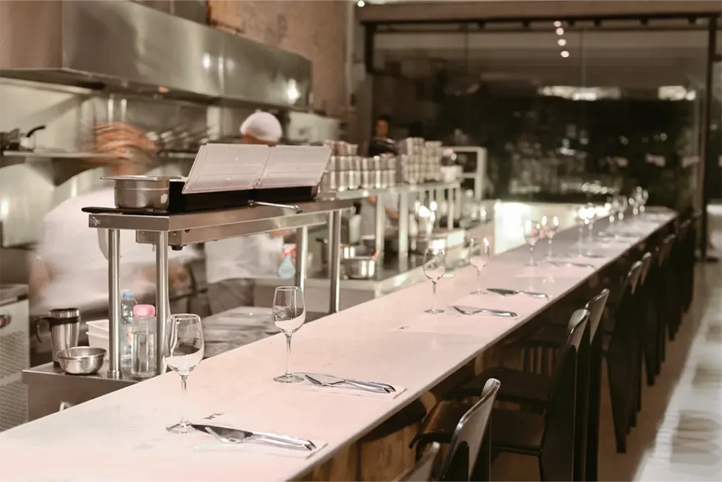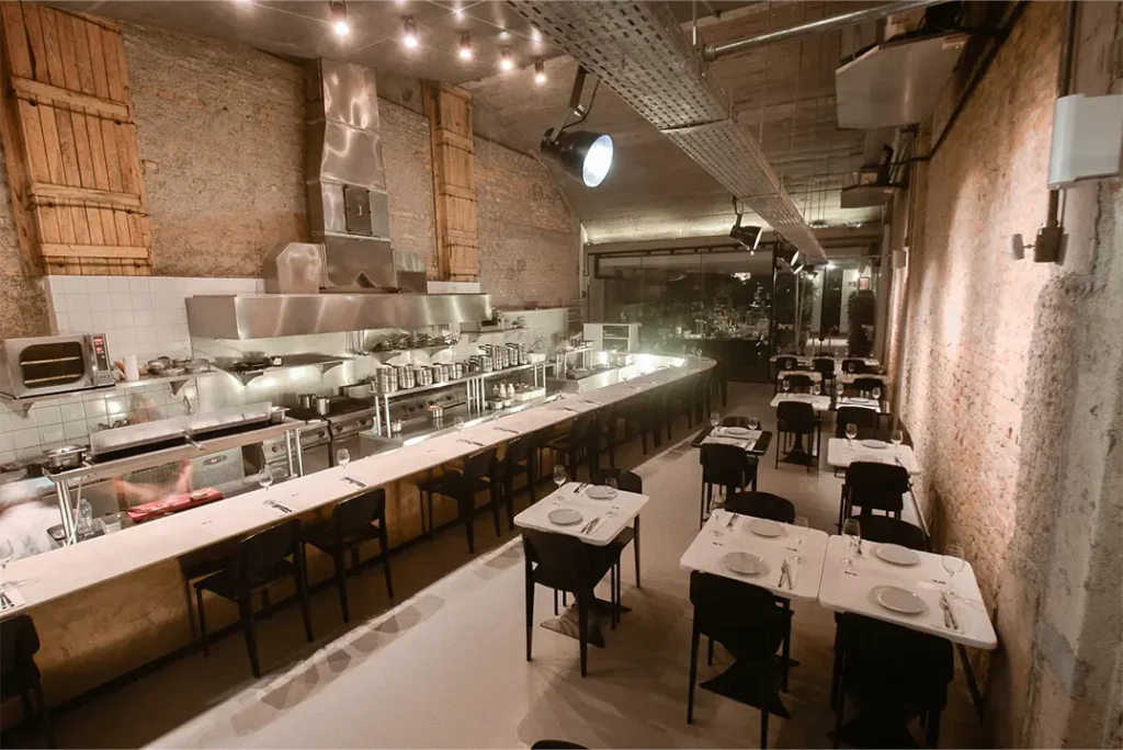 No salão principal, as mesas dividem espaço com a cozinha de finalização, aberta e visível a todos, seguido de uma área externa com teto de vidro. O segundo andar é dedicado à cozinha, depósito e área administrativa. Já o terceiro, de onde é possível ter uma visão ampla do Bixiga, é um Rooftop dedicado a festas e eventos.