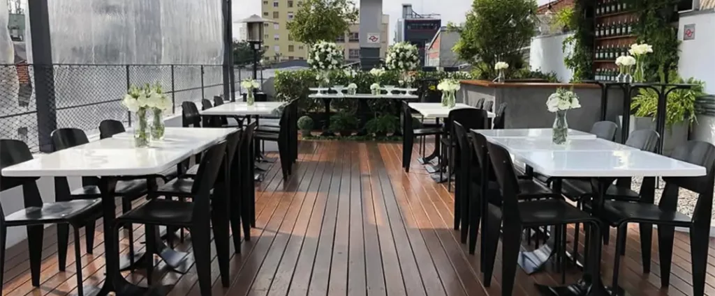 A casa se destaca pela gastronomia, drinks autorais e carta de vinhos estruturada e, ao mesmo tempo, um lugar ideal para reunir a família, encontrar os amigos e fazer negócios em um ambiente contemporâneo e aconchegante. Localizado em um antigo prédio de três andares, o espaço foi totalmente reformado e ganhou vida com o projeto arquitetônico de Rafic Farah e paisagismo de Marcelo Faisal. A estética impactada pelas referências rústicas, com paredes de tijolos à vista e ares de demolição, a decoração mistura vidro, madeira, pedras e objetos garimpados pelos sócios ao redor do mundo.